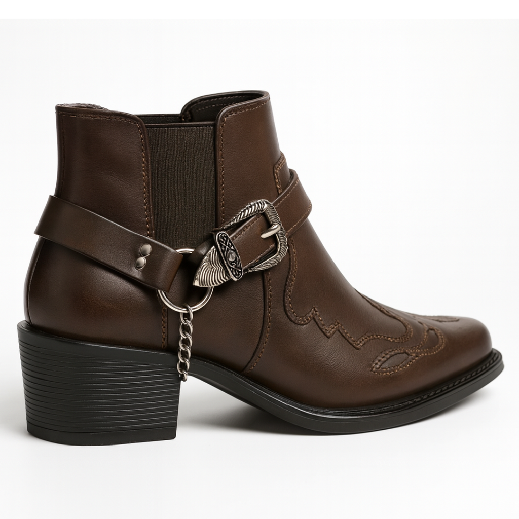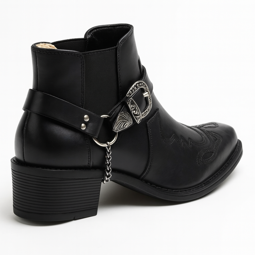 Signature Buckle & Chain Accent — Distinctive metalwork that elevates the boot from stylish to iconic.